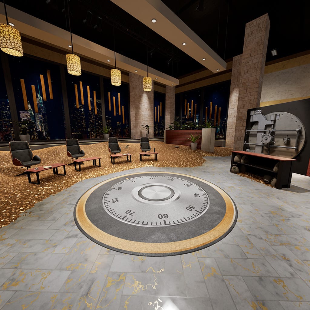 Step into an immersive bank vault-themed venue where you'll deliver your pitch to four discerning investors, each with unique personalities.
