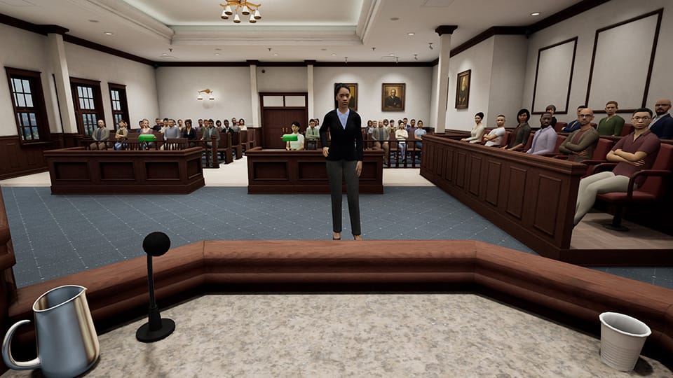 Deliver an opening or closing argument to the jury and refine your narrative, pacing, and impact. Optionally reinforce your case using courtroom screens to display imported exhibits.